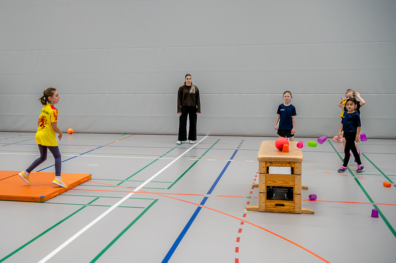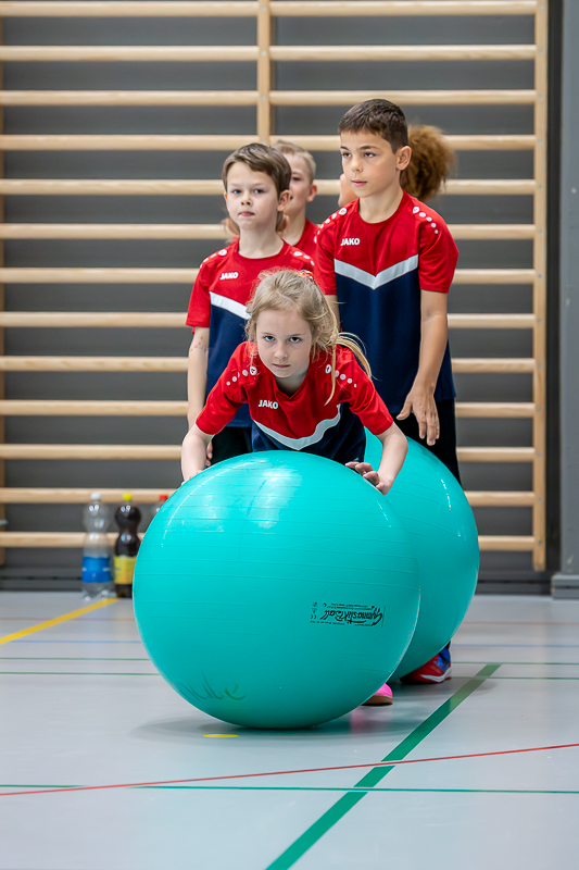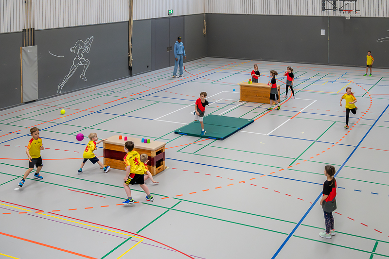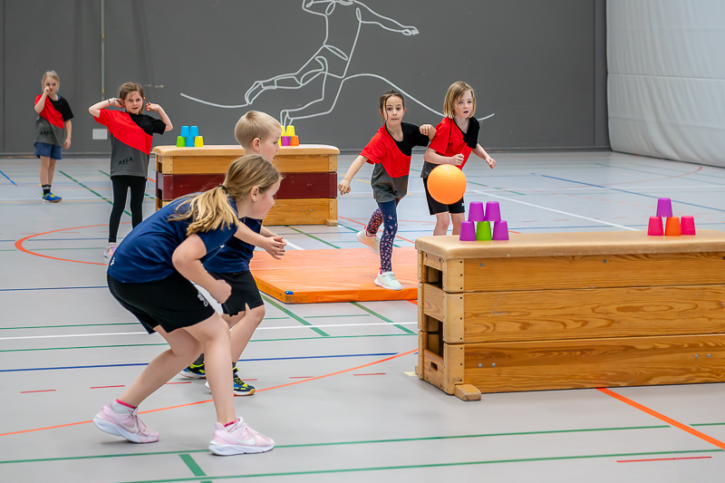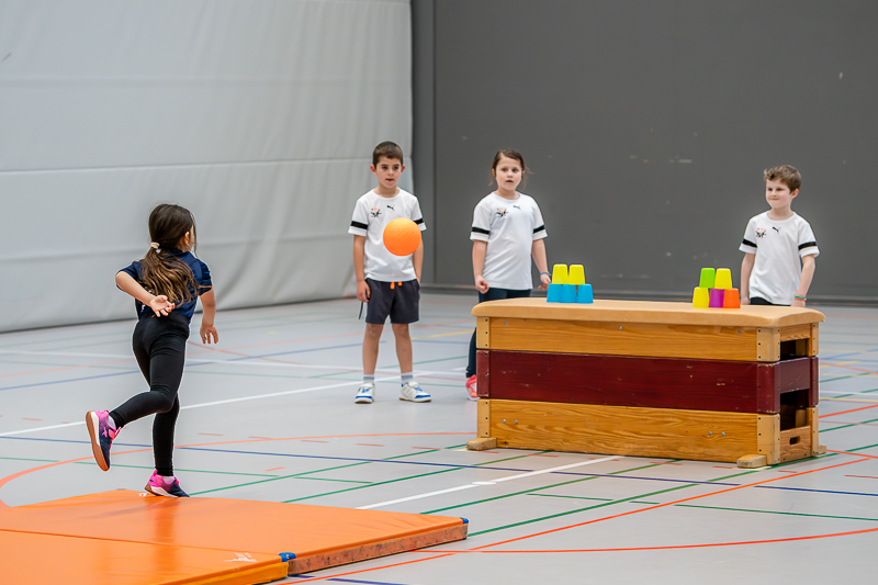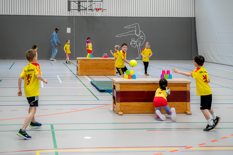 Das Spielturnier startete um 08.00 Uhr morgens mit Kategorie 2 (Jahrgänge 2016/17) und dem Spiel „Steirollen“ mit 11 Mannschaften und ca. 90 Kindern. Eine Jägermannschaft und eine Rollmannschaft kämpften um Punkte. Ein grosser Gymnastikball diente als Stein, den die Rollmannschaft durch einen Slalom aus Malstäben manövrieren musste. Ziel war es, möglichst viele Malstäbe anzulaufen. Gleichzeitig versuchte die gegnerische Jägermannschaft die Rollmannschaft mit Softbällen abzuwerfen. Wurde ein Kind getroffen, durfte die nächste Person aus der Rollmannschaft starten. Nach 4 Minuten gab es Rollenwechsel. Das Team vom STV Roggliswil erwies sich als besonders geschickt und holte den Sieg, Zweite wurde STV Willisau 6 und Dritte STV Willisau 5.