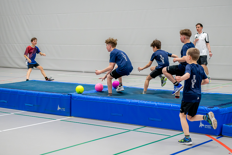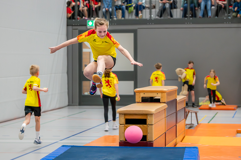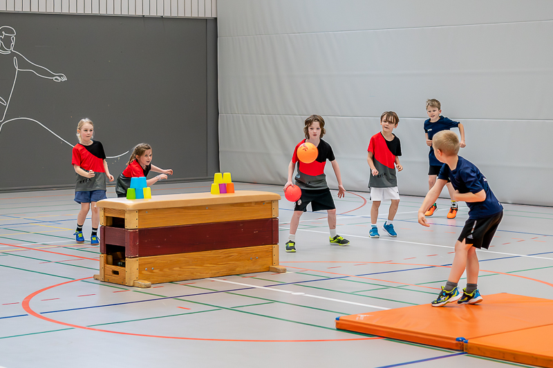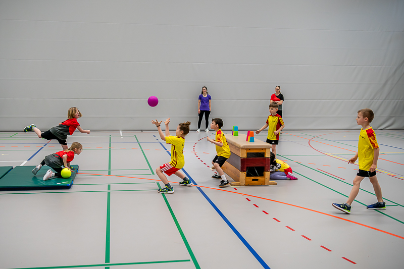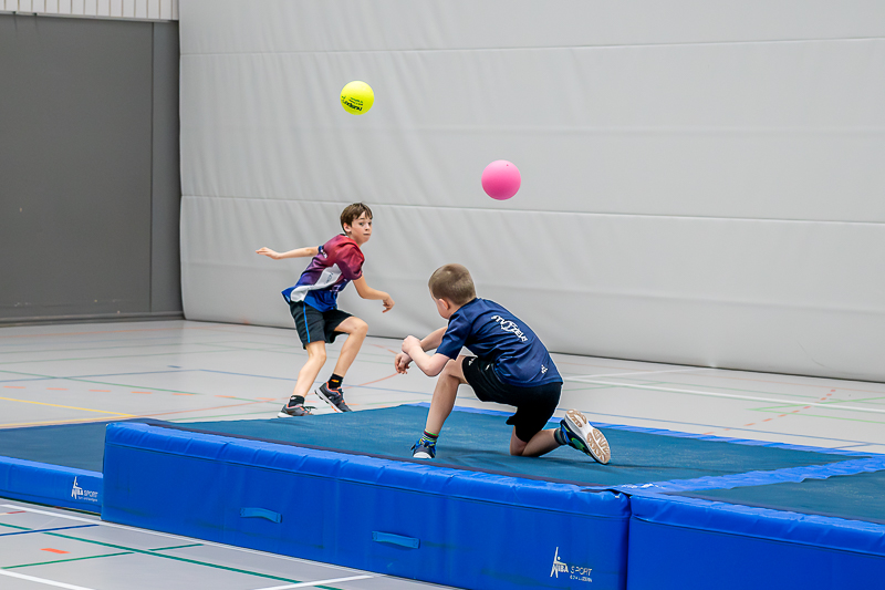 Als letztes Spiel des Turniers war das „Ritterduell“ angesagt, 7 Mannschaften der Jahrgänge 2010 bis 2013 meldeten sich dazu an. Hier hatten die beiden Mannsch 8 Minuten Zeit, wie beim Völki, mit Softbällen die Gegner auf der anderen Hallenhälfte oder auf den Matten abzuschiessen. Doch zusätzlich mussten sich die Spieler über Hindernisse bewegen und durften sich nur innerhalb eines bestimmten Bereichs aufhalten, was das Duell besonders spannend machte. Die Jugi Langnau 1 konnte sich durchsetzen und gewann vor dem TV Triengen 3 und dem STV Zell 8.