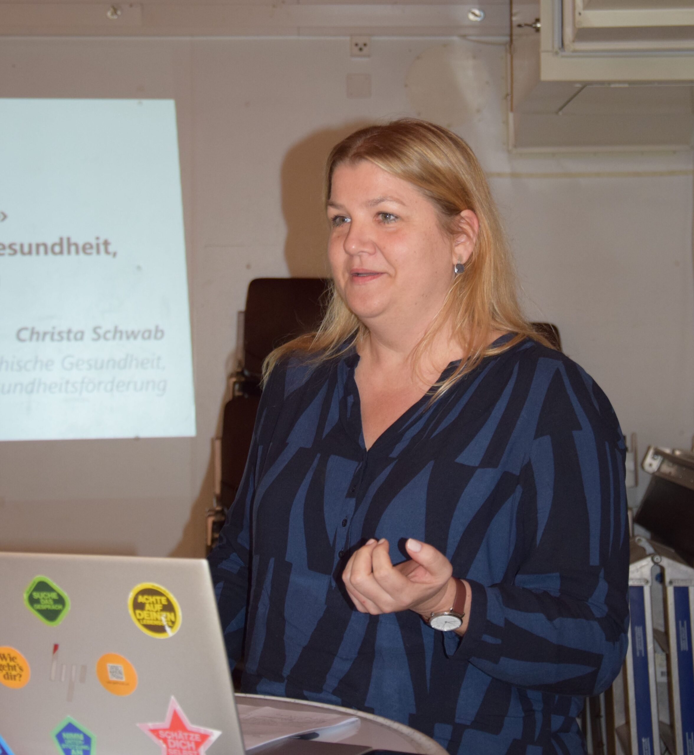 Über psychische Gesundheit zu reden ist auch im Turnverein ein Thema. Sie nannte verschiedene Risikofaktoren und Schutzfaktoren wie Sport (Mannschaftssport). Es gilt die Resilienz zu stärken, gute Beziehungen zu fördern, Neues zu wagen. Psychische Belastungen erleben viele, man rede aber nicht darüber. Bei Nichtbeachtung verursache dies längerfristig Leiden – und Kosten. Wichtig ist daher die Frage: Wie geht es mir? Was tut mir gut? Wissen wir was wir brauchen? Sport im richtigen Mass schützt gegen psychische Erkrankungen. Sie rät uns die Komfortzone zu verlassen, Gespräche zu suchen – Beziehungen zu pflegen. Sie macht auf die Kampagne „wie geht es dir“ aufmerksam (App) und auf die ensa Erste-Hilfe-Kurse, die Laien in die Lage versetzen, auf Betroffene mit psychischen Schwierigkeiten zuzugehen und Erste Hilfe zu leisten. Mit einem feinen Schöggeli mit der Aufschrift „Wie geht‘ dir?“ verabschiedete sie sich. Danke für die wertvollen Impulse zur Verbesserung der eigenen psychischen Gesundheit.