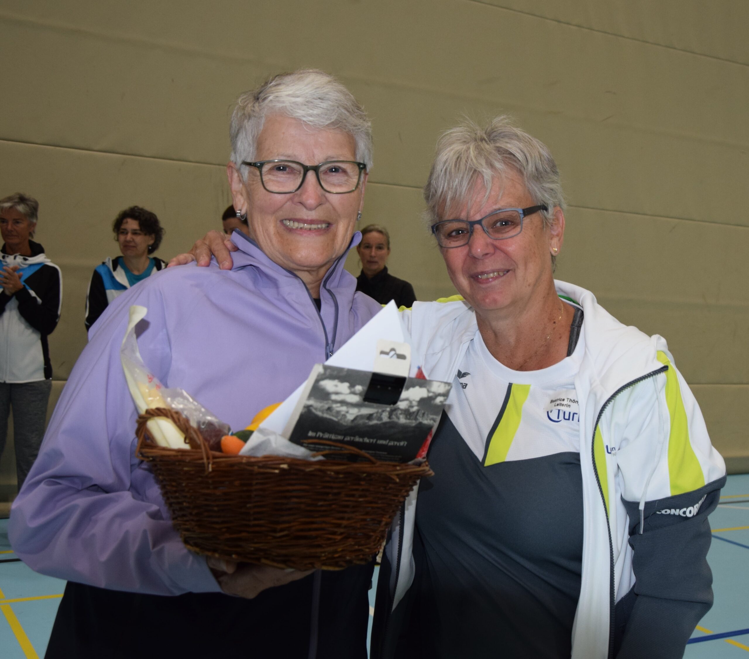 Hedy Gasser machte Werbung für die Gruppe Gym Aktive plus, die einmal im Monat in der Turnhalle Hübeli in Emmenbrücke trainiert. Im November und Dezember werden zwei Schnupperlektionen angeboten und sie lädt alle ein, doch mitzumachen – auch Männer. Nach 13 Jahren hat Hedy ihren Rücktritt als Kursleiterin gegeben und Roger Hafner dankt ihr mit einem kleinen Geschenk für ihr Engagement. Weiter wird sie in der Turnhalle von Beatrice Thöny mit einem Geschenkkorb überrascht.