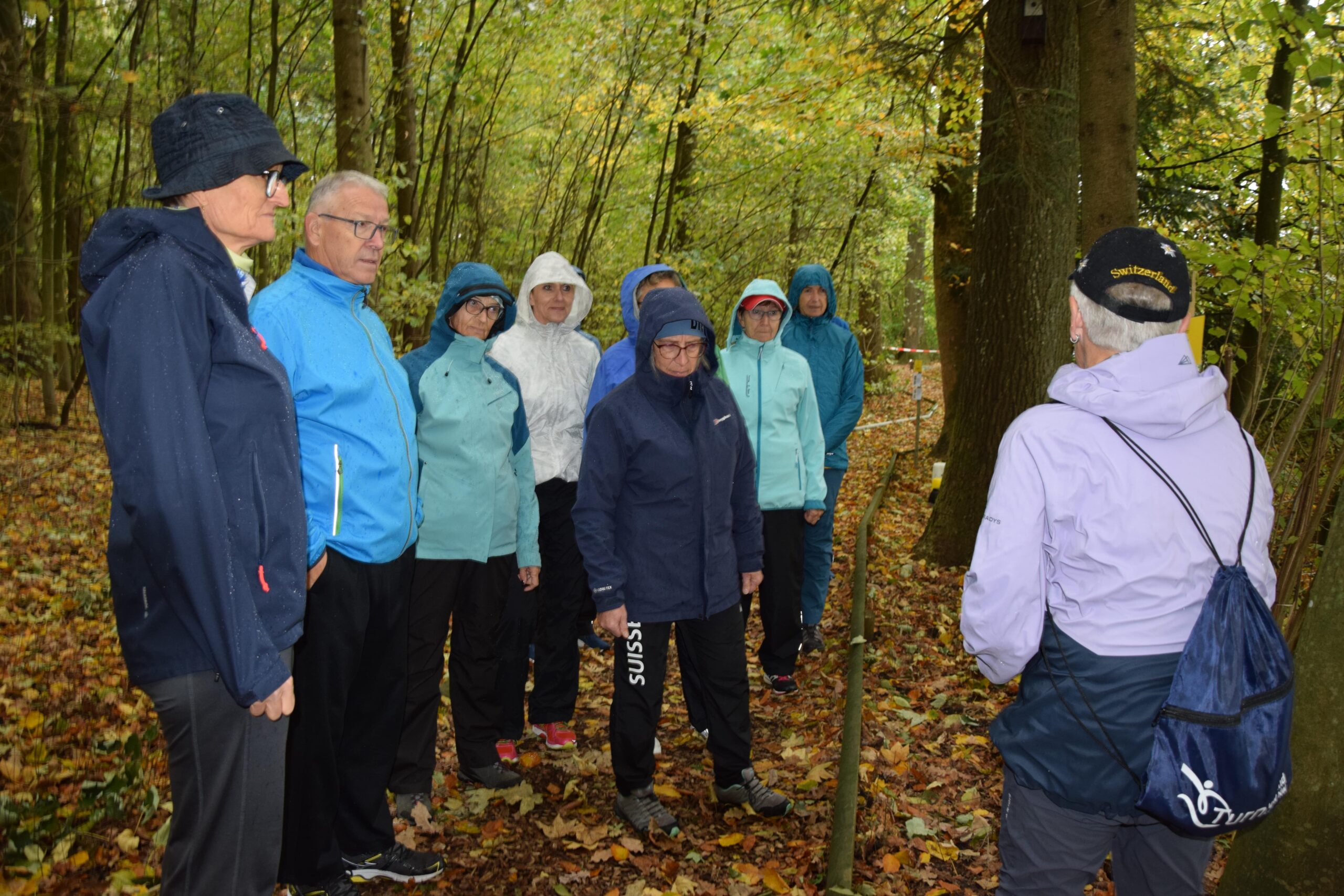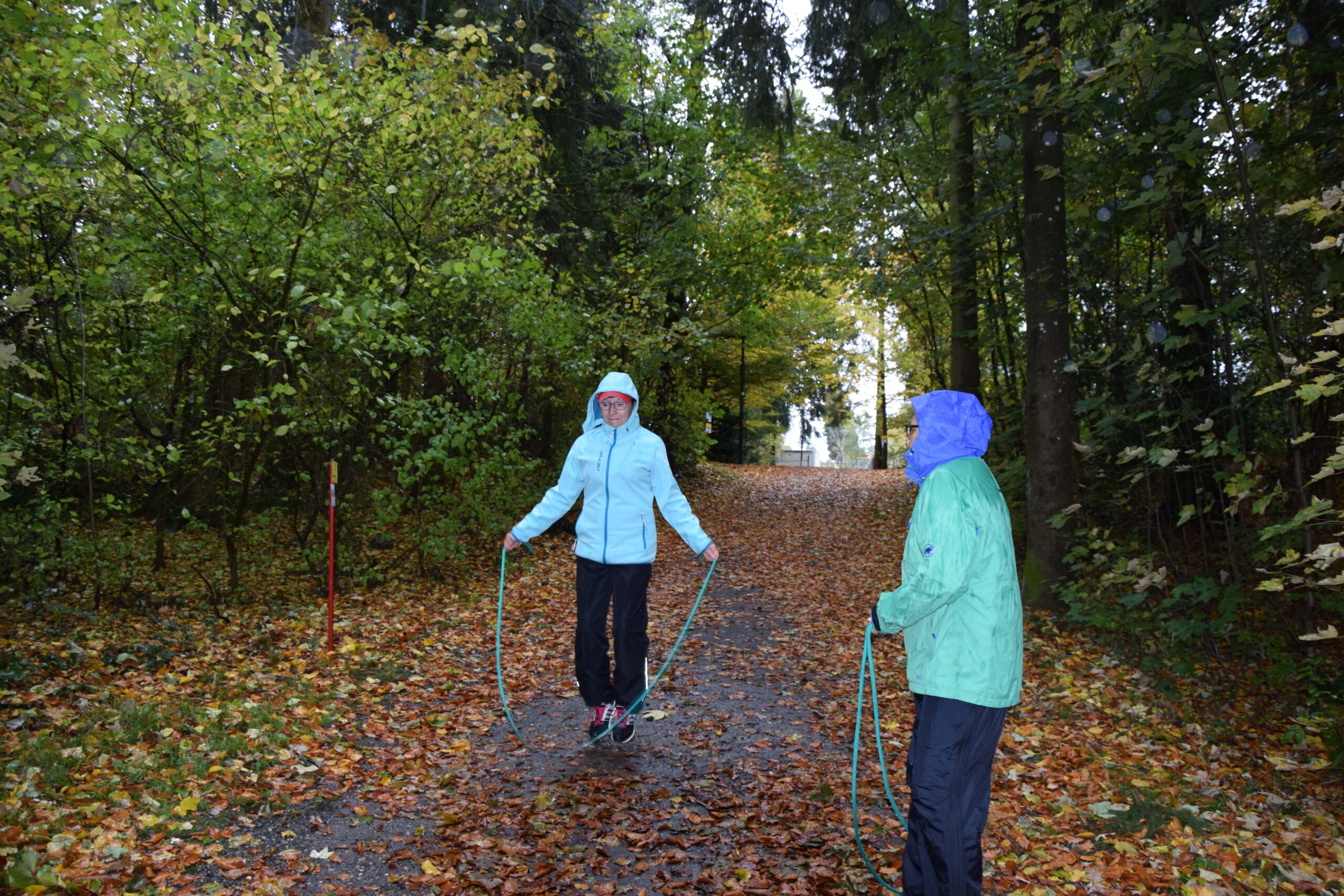 „Circuit im Freien“ mit Hedy Gasser (Triengen). Bewegung an der frischen Luft ist mehr als ein Training – es ist ein Erlebnis für Körper und Geist. Ein Outdoor-Training ergänzt das Turnen in der Halle, indem es neue Reize setzt, das Immunsystem stärkt und uns mit der Natur verbindet. Ihr Llektionsziel ist es das Wohlbefinden der Teilnehmenden zu fördern, unabhängig von der Jahreszeit. Eine super Lektion im Wald mit Stationen wie Disc Golf, Seilspringen, Schulterdrücken mit Bizeps-Curl, Sitz am Baum oder Baumstamm steppen. Schon eine Woche vorher traf man Hedy im Wald mit den Vorbereitungen. Die erste Gruppe konnte die Übungen nach ihren Vorgaben machen. Und dann begann es mehr oder weniger stark zu regnen! Hedy begleitete auch die anderen Gruppen auf die Uebungsbahn – wir bewunderten sie. Ihr schien der Regen nichts zu machen – sie hatte die richtigen Kleider – leider viele Kursteilnehmer*innen weniger. Das Outdoor-Programm ist eine Ergänzung zu anderen Inhalten von Concordia Fitiva. Die Inhalte basieren auf den Inhalten von Winterfit.