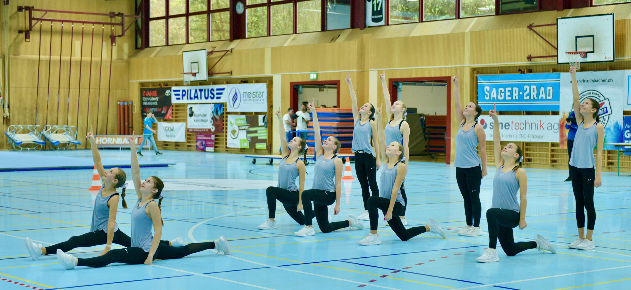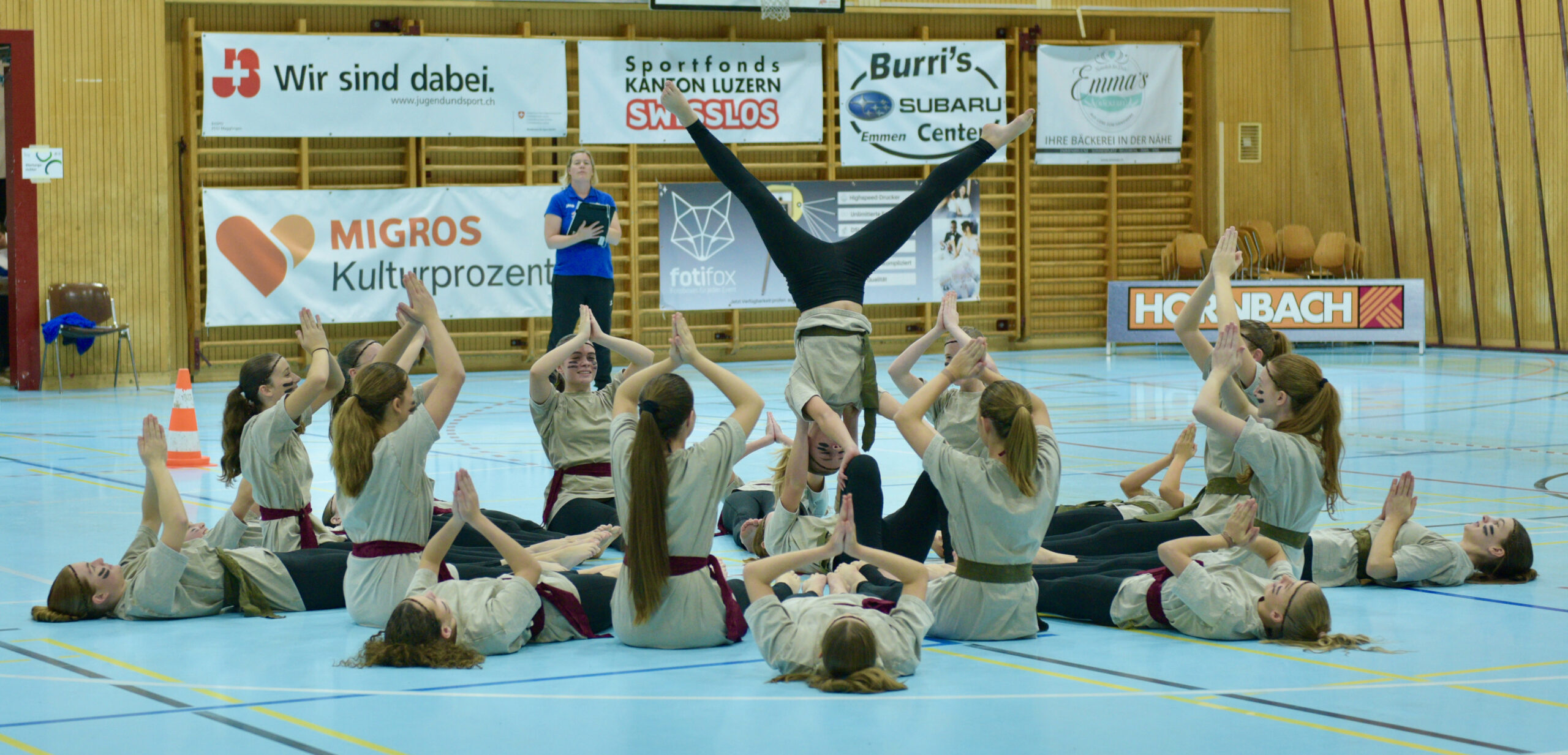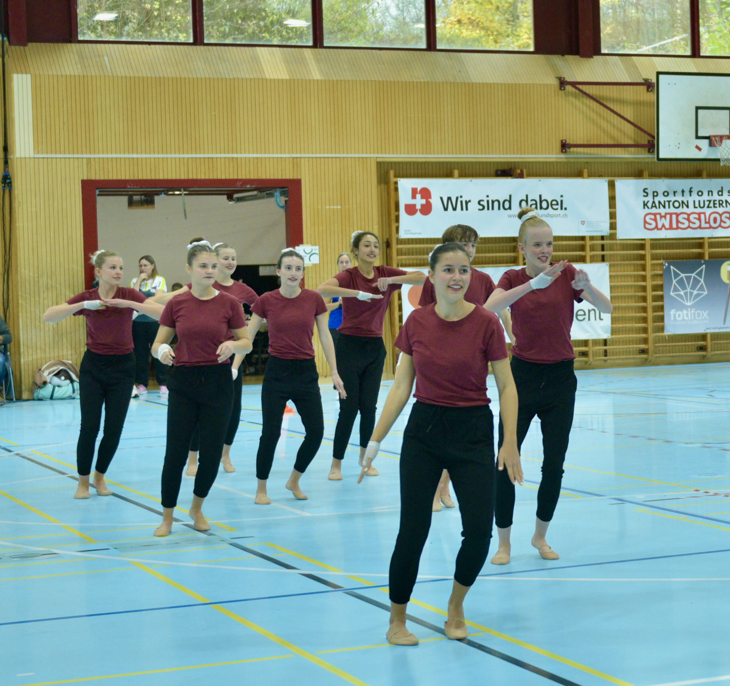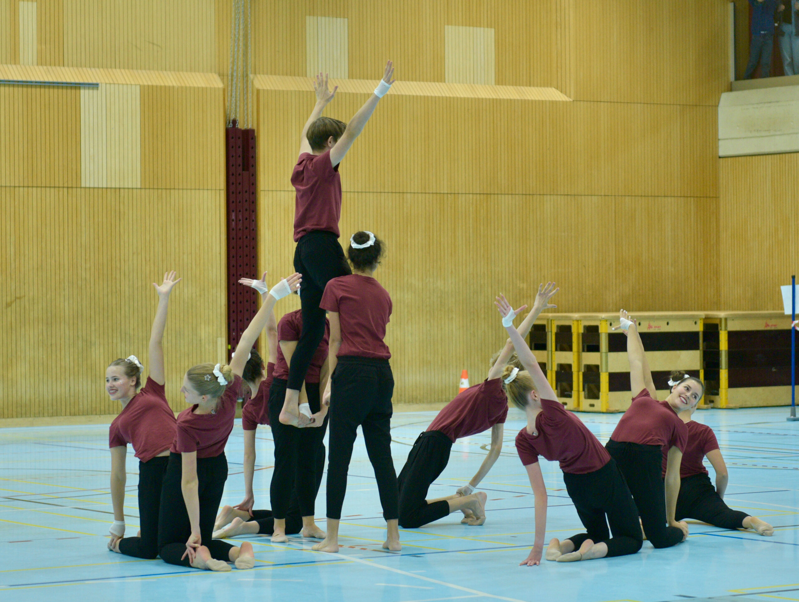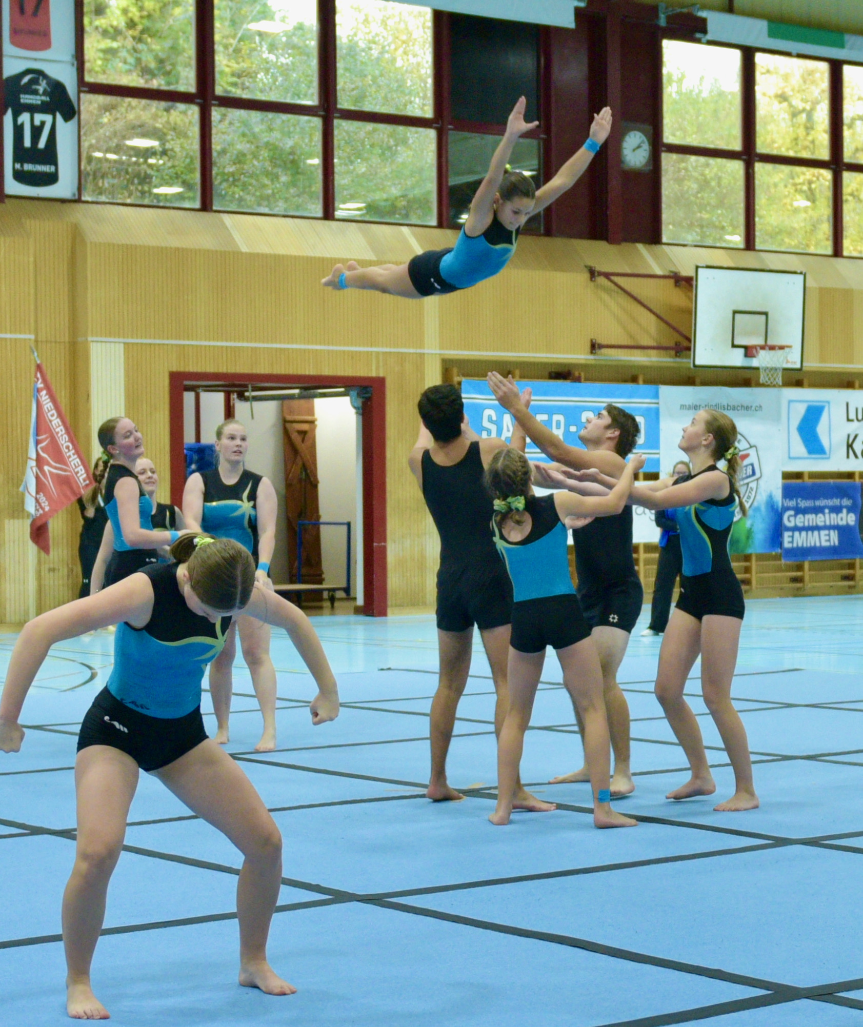 In der Gymnastik starteten die Vereine unterteilt in eine U13 und eine U16 Kategorie. Die Goldmedaille durften sich die 10 Jugendlichen vom TSV Rohrdorf Teensym U16 mit der Note 18.33 um den Hals hängen. Die Silbermedaille konnte sich der ESV Eschenbach in der U16-Kategorie mit der Note 17.78 um den Hals hängen – knapp vor dem STV Ettiswil U16 mit der Note 17.63. Vierter wurde ebenfalls der ESV Eschenbach U13 mit der Note 17.10. Auch die Gastgeber, der TSV Emmenstrand  schickten zwei Gruppen an den Start. Fünfte wurden TSV Emmenstrand U16 und Achte TSV Emmenstrand U13. Engagierte Leiterin des TSV Emmenstrand war Claudia Diltz, OK-Präsidentin vom Gastgeber Emmenstrand.  Sie meisterte ihre Doppelrolle ohne Probleme.