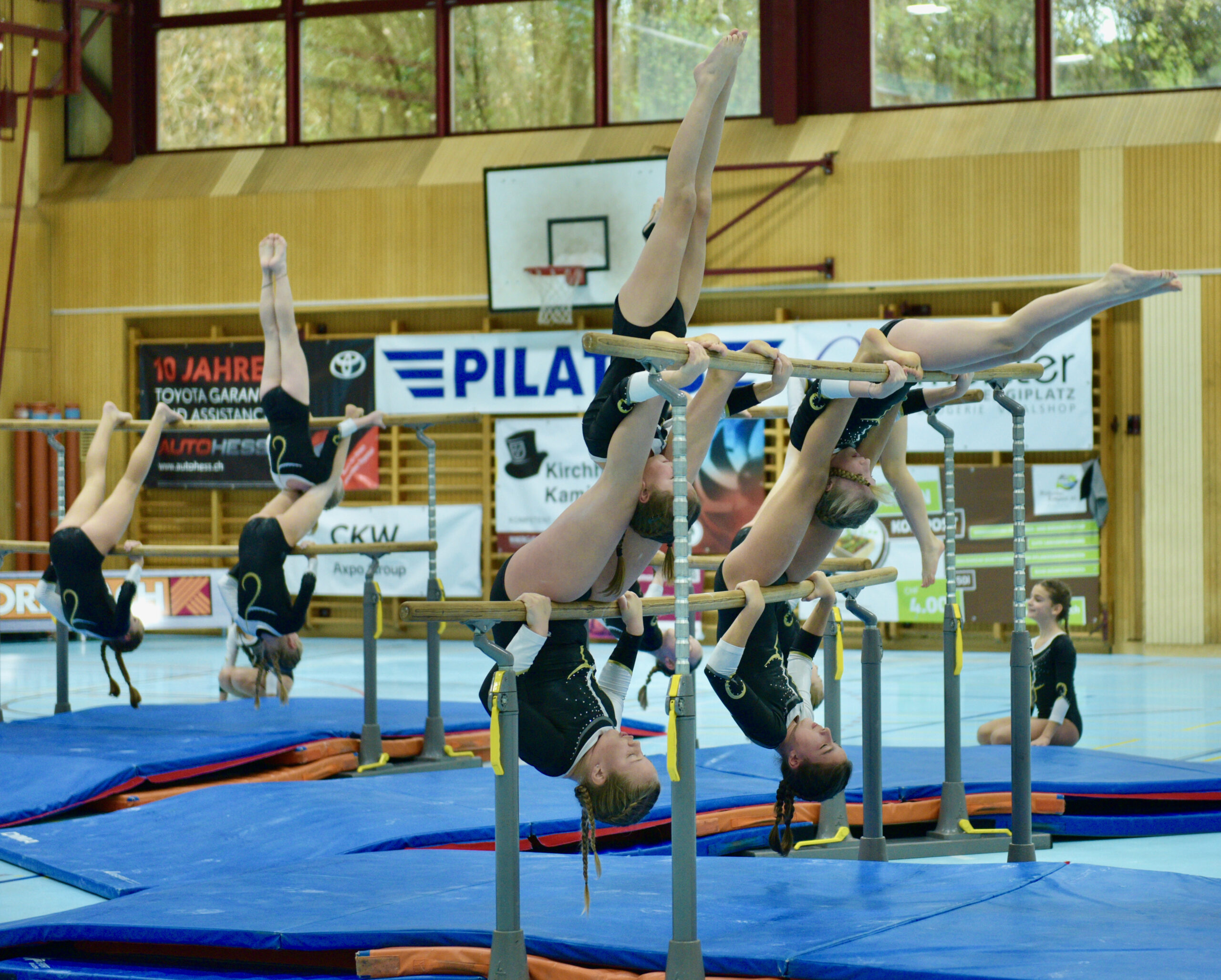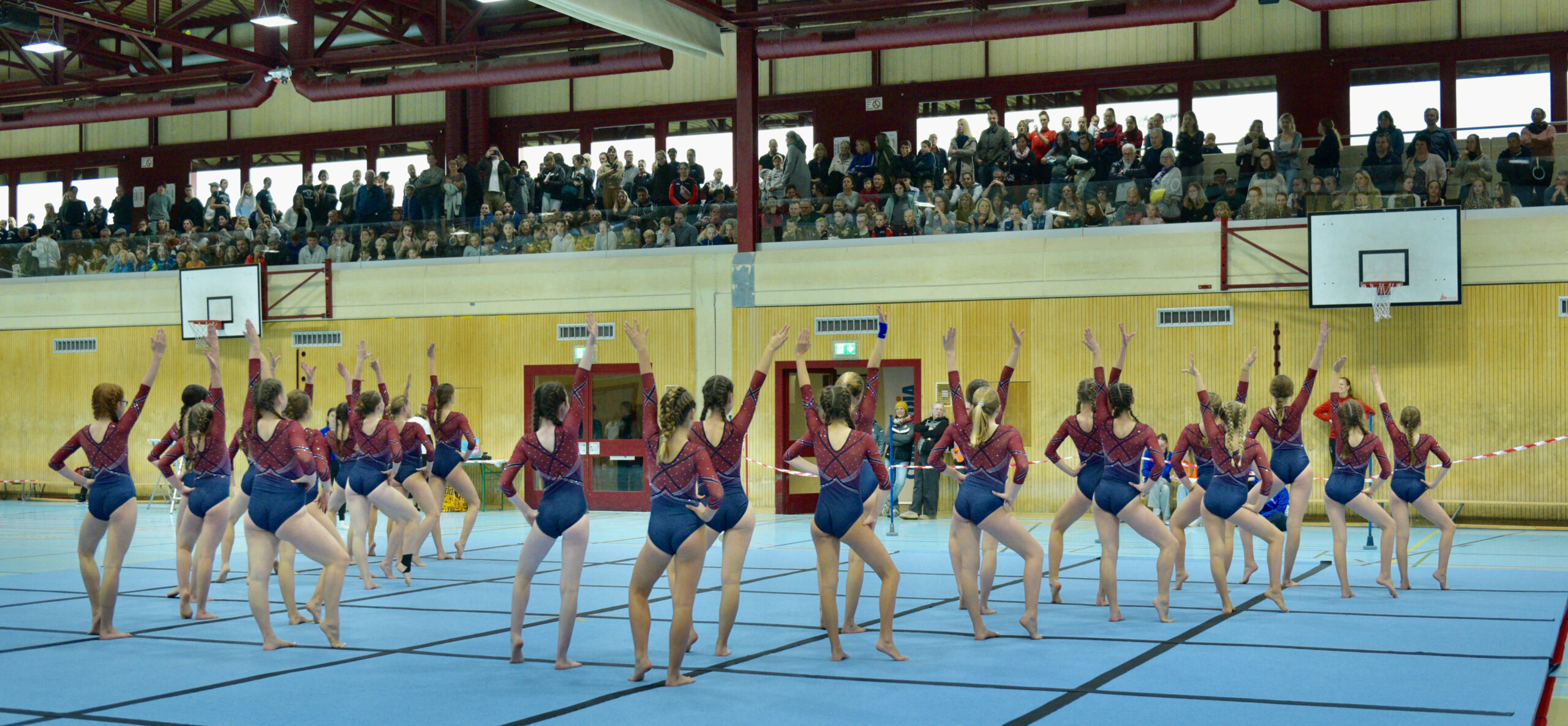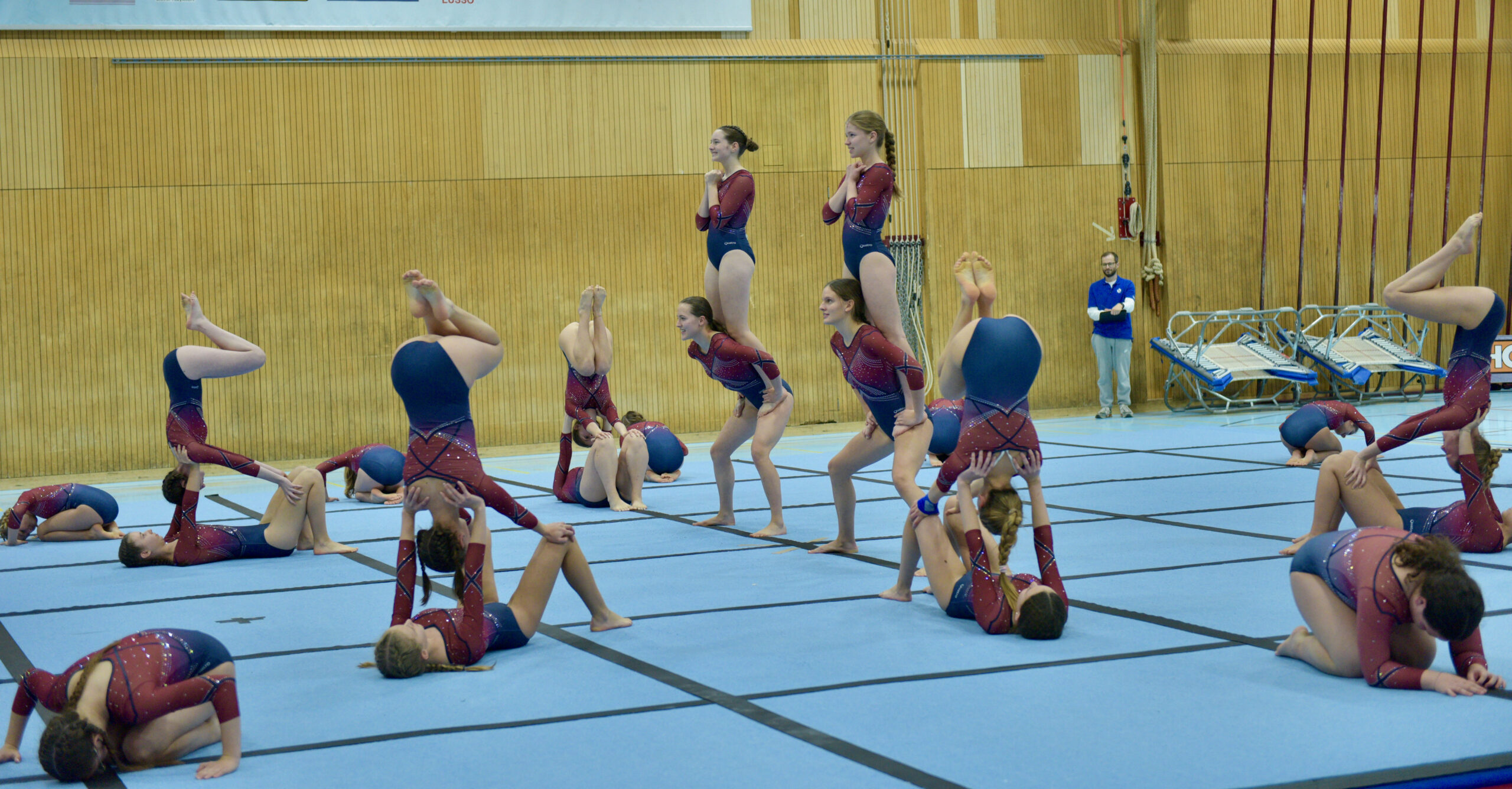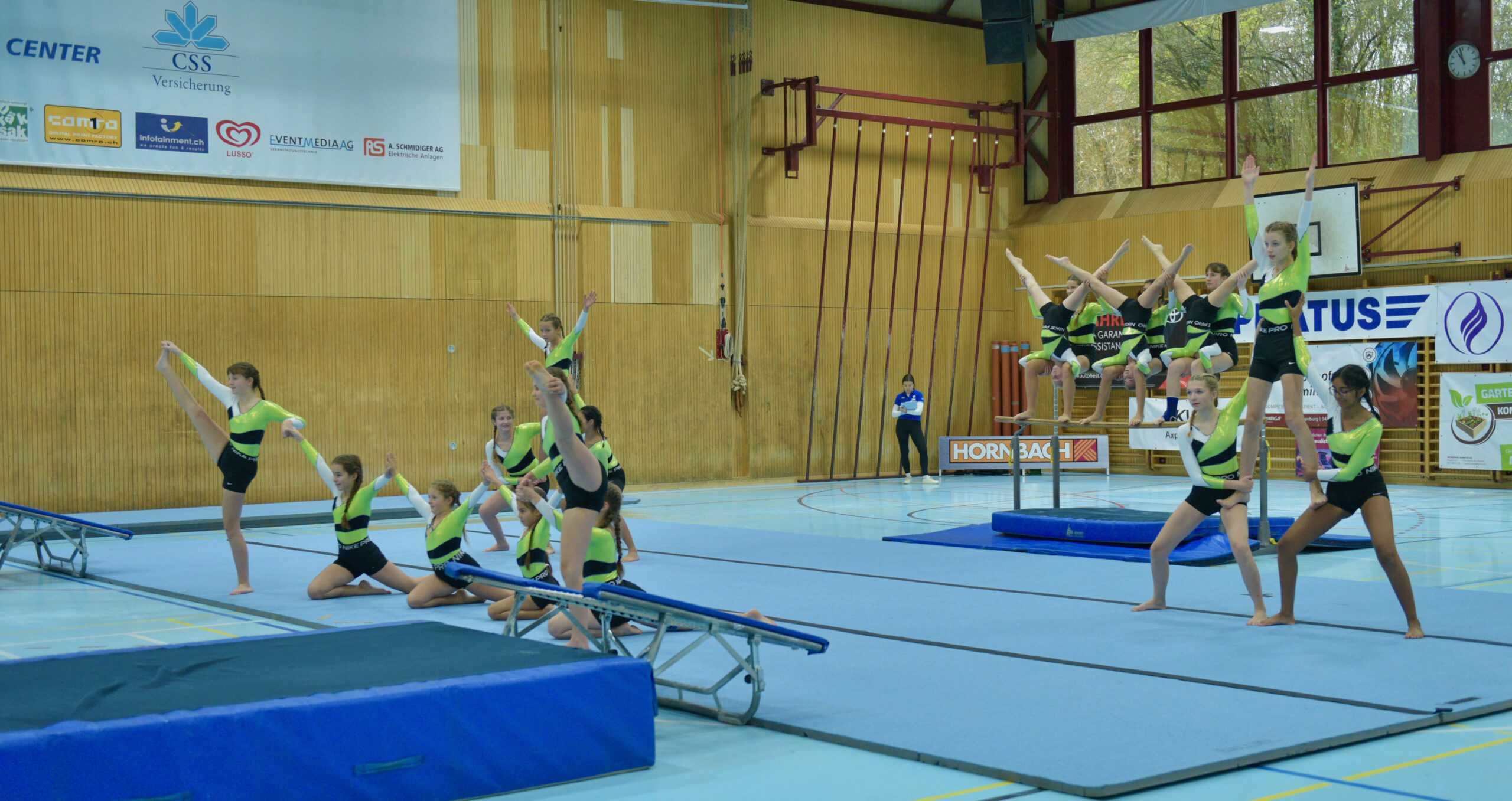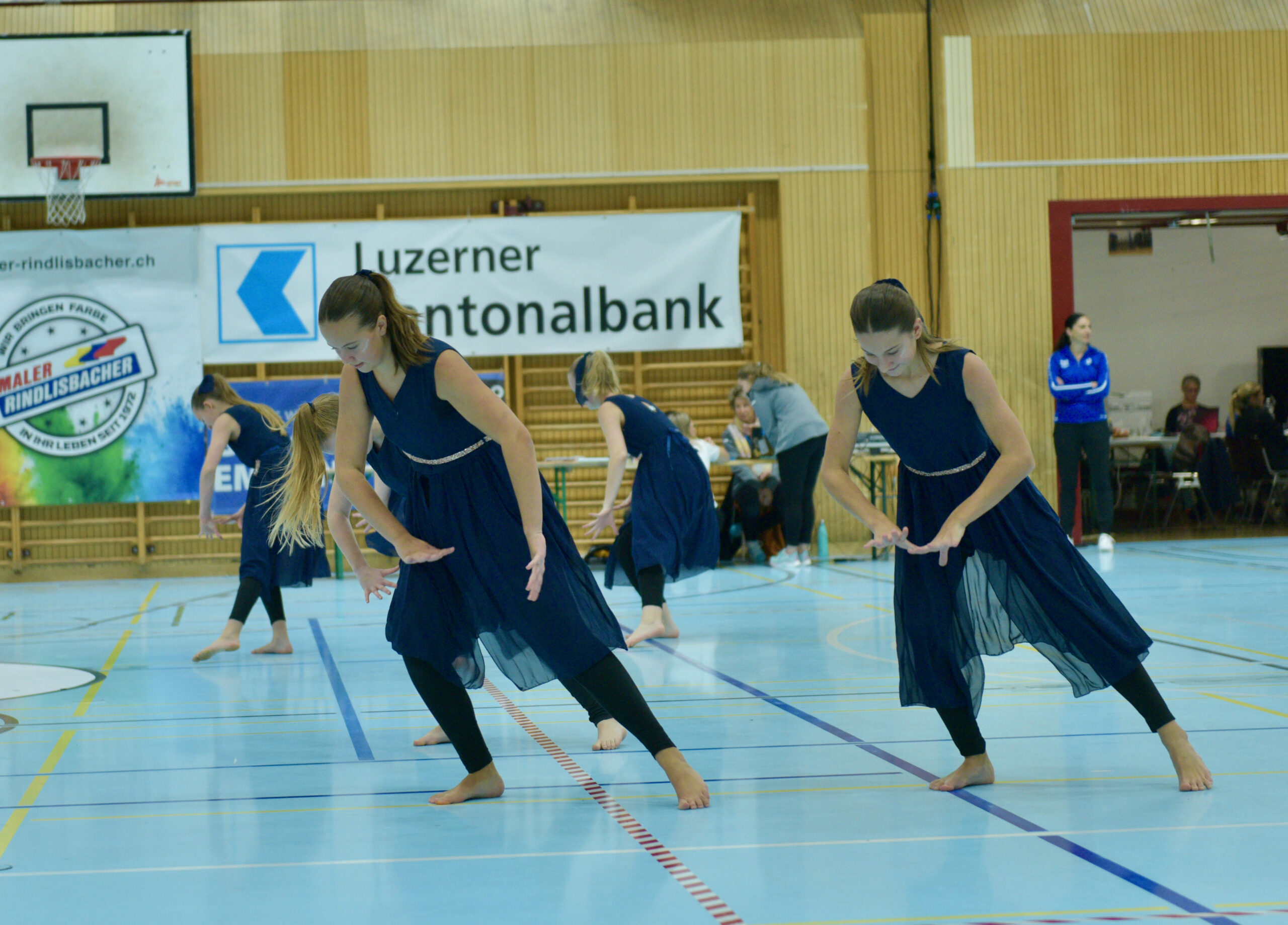 In der Gymnastik starteten die Vereine unterteilt in eine U13 und eine U16 Kategorie. Die Goldmedaille durften sich die 10 Jugendlichen vom TSV Rohrdorf Teensym U16 mit der Note 18.33 um den Hals hängen. Die Silbermedaille konnte sich der ESV Eschenbach in der U16-Kategorie mit der Note 17.78 um den Hals hängen – knapp vor dem STV Ettiswil U16 mit der Note 17.63. Vierter wurde ebenfalls der ESV Eschenbach U13 mit der Note 17.10. Auch die Gastgeber, der TSV Emmenstrand  schickten zwei Gruppen an den Start. Fünfte wurden TSV Emmenstrand U16 und Achte TSV Emmenstrand U13. Engagierte Leiterin des TSV Emmenstrand war Claudia Diltz, OK-Präsidentin vom Gastgeber Emmenstrand.  Sie meisterte ihre Doppelrolle ohne Probleme.