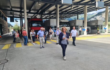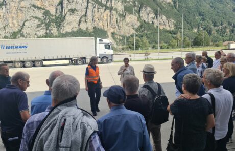 45 begeisterte Turnveteraninnen und Turnveteranen besuchten das Schwerverkehrszentrum in Erstfeld.